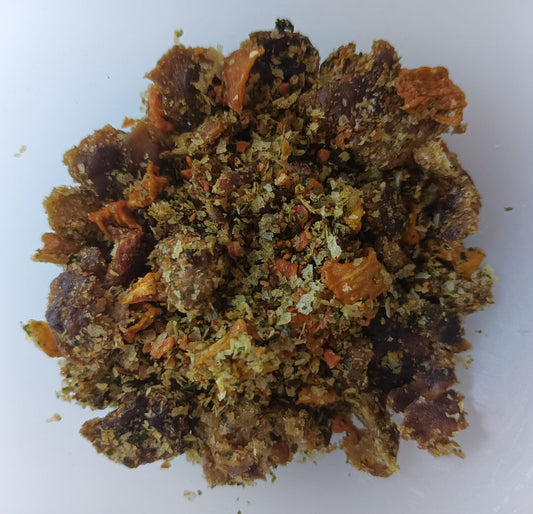 La comida deshidratada es elaborada de forma artesanal, sin conservantes , aditivos, colorantes o aromatizantes.