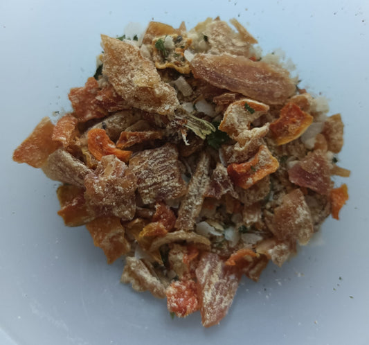 La comida deshidratada es elaborada de forma artesanal, sin conservantes , aditivos, colorantes o aromatizantes.