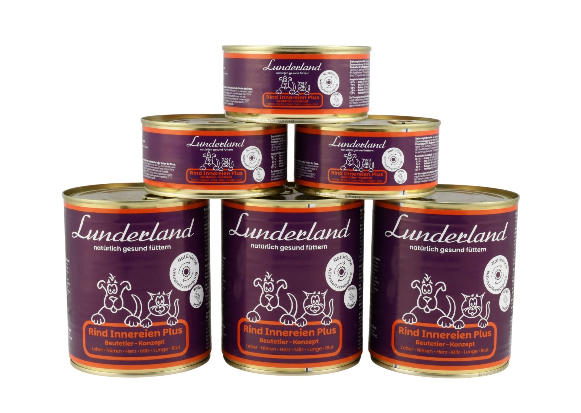 Esta lata de comida húmeda está compuesta de 30 % hígado, 15 % riñón, 15 % corazón, 15 % bazo y 15 % pulmón, 10 % sangre de Ternera